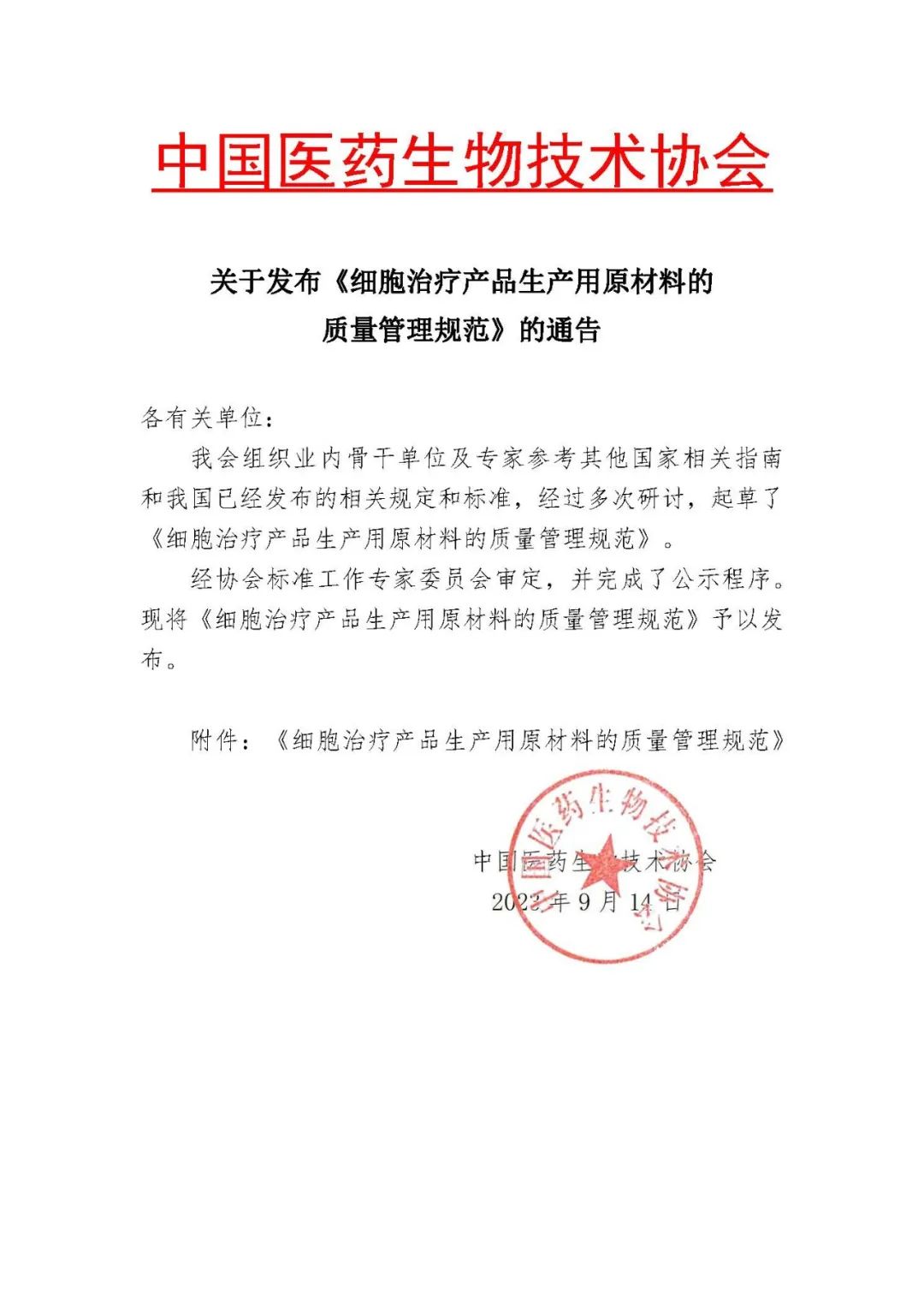 【博览】中国医药生物技术协会《博雅生命》:《细胞治疗产品生产用原材料的质量管理规范》的通告
