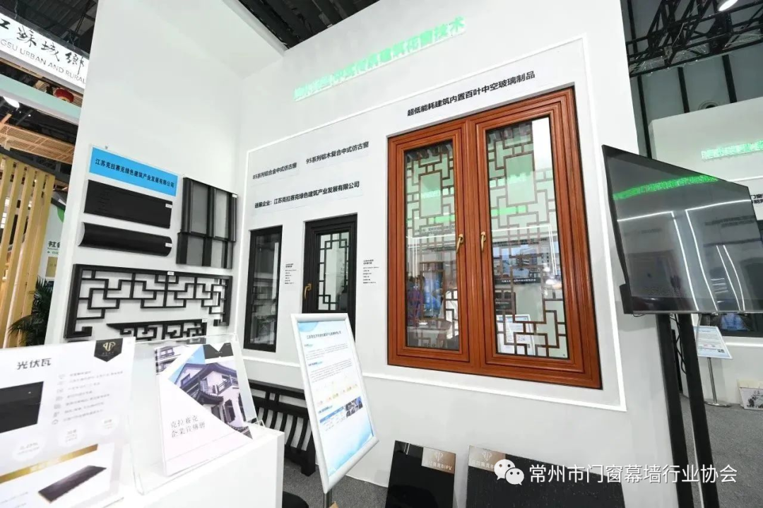 “绿色低碳、科技赋能——高性能建筑门窗产业技术主题展区”围绕高性能建筑门窗领域产品部件和产业技术进行展陈,集中展现我省高性能建筑幕墙门窗产业在绿色低碳转型方面的探索和实践,以科技创新成果为产业高质量发展探索路径、提供示范。展陈技术内容涵盖超低能耗被动房、装配式模块化门窗产品、高隔声性能建筑门窗产品、高保温性能建筑门窗产品、高防火性能建筑门窗产品、智慧家居门窗和遮阳产品、遮阳通风一体化门窗产品、光伏幕墙构件产品等十余类产业技术,集中体现了我省高性能建筑门窗及幕墙产业技术发展和工程应用水平。常州市门窗幕墙行业协会会长单位江苏克拉赛克绿色建筑产业发展有限公司、监事单位江苏金百合门窗科技有限公司、会员单位常州天经新型建材有限公司的产业技术顺利入选“2023江苏绿色低碳建筑国际博览会展示技术成果”并集中亮相展会。