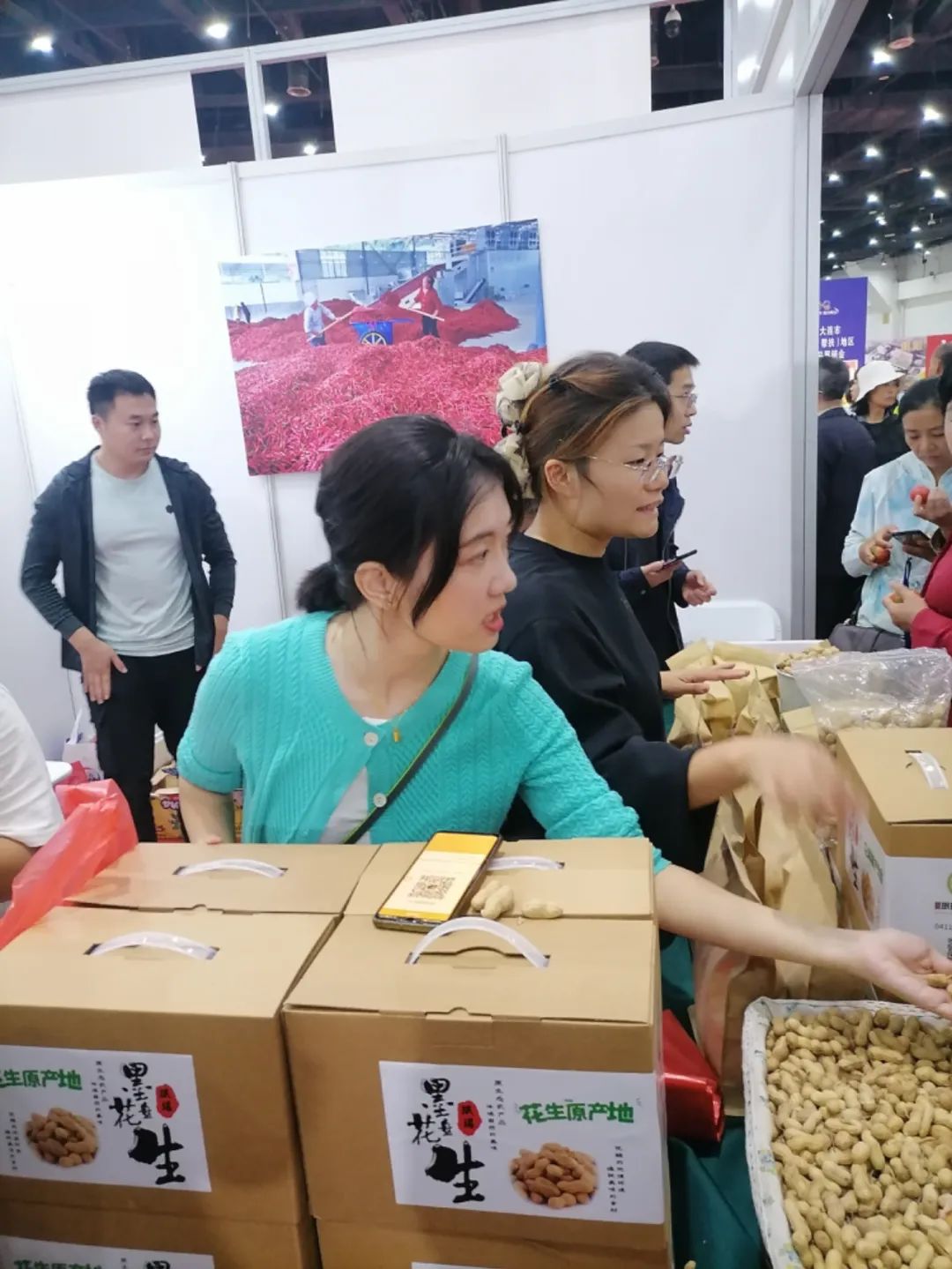 此次展销的产品都是墨盘特色的农产品,有河沿村和石岭社区的花生,梨树房社区的铁柿子,滕屯社区的地瓜等。这些新鲜农产品非常受欢迎,仅12日一上午带去的400余斤花生就被抢购一空,销售额达5000余元,铁柿子和地瓜等产品也供不应求,很多消费者还主动添加了第一书记及展销商的联系方式,以方便日后购买和大批量订货。