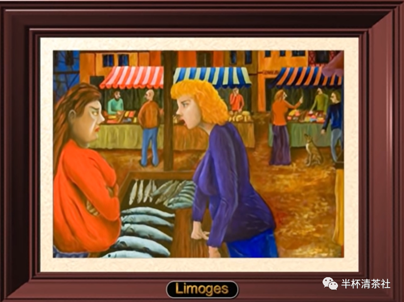 at Limoges,Der Marktplatz von Limoges【德】)这是我们每一个人都熟悉的日常生活中的市场,商贩与买主对商品评头论足,你来我往地讨价还价。