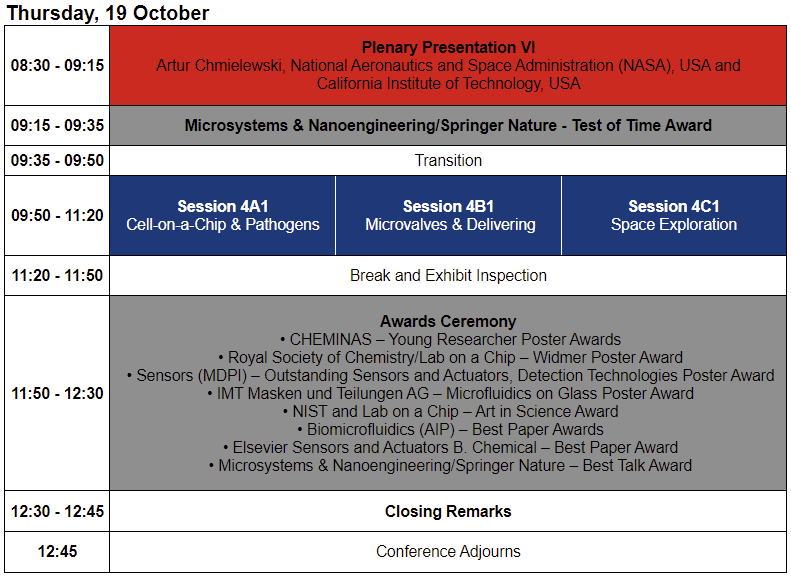 Miniaturized Systems for Chemistry and Life Sciences (μTAS 2023)会议是报告生命科学和化学领域微流体、微加工、纳米技术、集成、材料和表面、分析与合成以及检测技术研究成果的顶级论坛。预计来自世界各地的 1000 多名科学家和行业专业人士将亲自分享化学和生命科学集成微系统和纳米技术的进展。