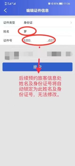 4.实人认证时需绑定身份证件并进行人脸识别,后续预约旅客信息处将自动锁定为实人认证时提交的身份信息,无法修改。