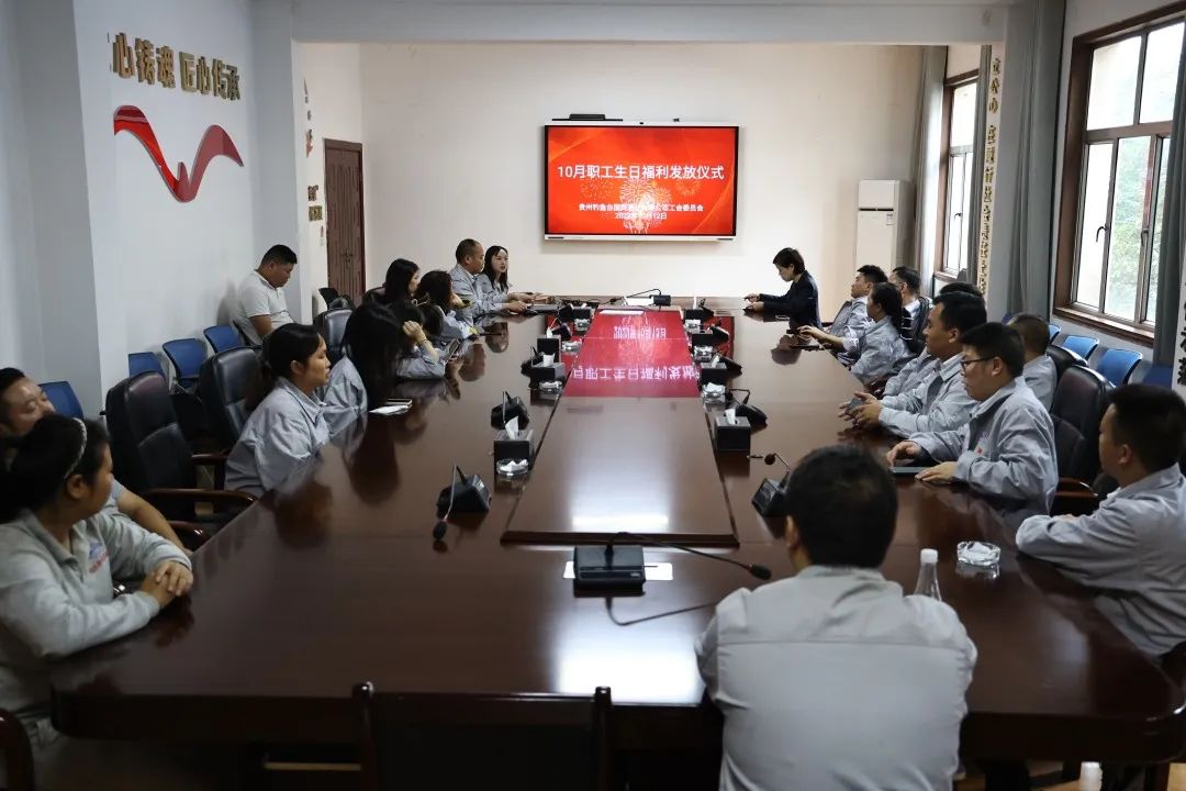 为进一步增强职工的凝聚力、向心力和归属感,体现生日仪式感,营造健康文明、积极向上的工作氛围。10月12日,钓鱼台酒业党支部、工会组织举行10月职工生日福利发放仪式。