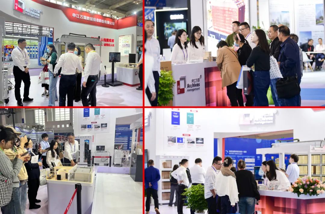 申江万国聚焦于档案行业全产业链服务,本次展会重点呈现系列行业领先的解决方案。包括无人档案库房系统、覆盖全国的库馆基地、一站式数字档案馆建设能力、成功的产学研校企合作案例以及面向行业发展的三大运营平台。我们不仅仅是展示产品和服务,更是向大家展现了申江万国在技术研发、服务升级和商业模式创新方面的最新突破理念。我们坚信,通过持续的创新和奋斗,申江万国将继续引领档案行业的发展,为客户提供更卓越的解决方案和专业的服务。