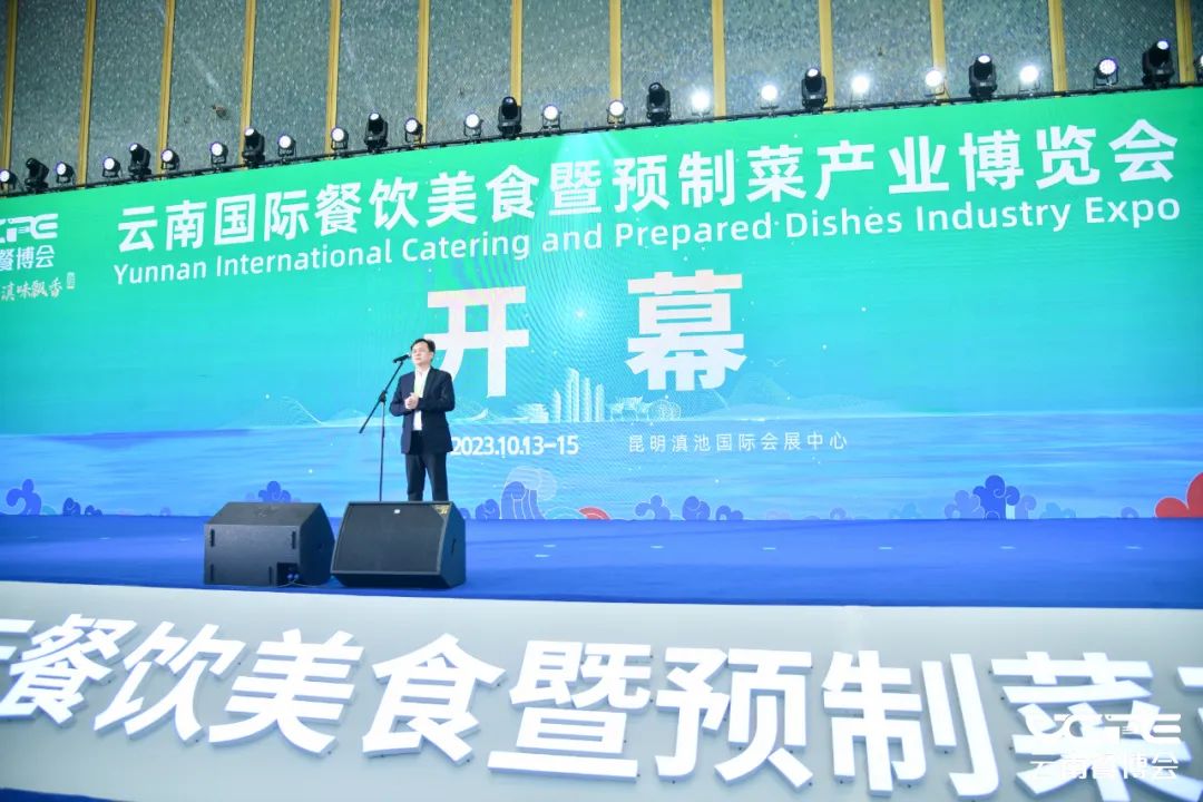 10月13日上午,云南国际餐饮美食暨预制菜产业博览会(简称:云南餐博会)在昆明国际会展中心7号馆盛大开幕。此次博览会从10月13日启幕至10月15日结束,为期3天,设置餐饮美食馆(7号馆)、餐饮食材馆(8号馆)、预制菜产业馆(9号馆),展出范围包括云南特色食材及预制菜产业链,覆盖综合形象展区、中央厨房展区、冷链物流展区、电商进农村展区、重要消费品展区、云南各州市餐饮美食特色食材展区、预制菜展区、餐饮食材及调味品展区、茶酒咖啡展区、连锁加盟及投资展区、商用厨房设备展区、食品包装及设备展区、冷链物流及设备展区等,全面覆盖餐饮食材、预制菜行业上下游。开幕式伊始,昆明市商务局党组书记李忠作为本次餐博会主办单位代表上台致辞。云南省商务厅党组成员顾敏、云南广电台副台长李晓风共同发布系列纪录片《滇味·生活》暨云南美食地图。纪录片将滇菜的独特魅力展现于世人面前,为滇菜出圈注入新动力,让滇菜成为云南旅游和文化产业的闪亮名片。云南省商务厅副厅长浩一山宣布此次云南餐博会正式启幕!快跟着云儿一起来看看