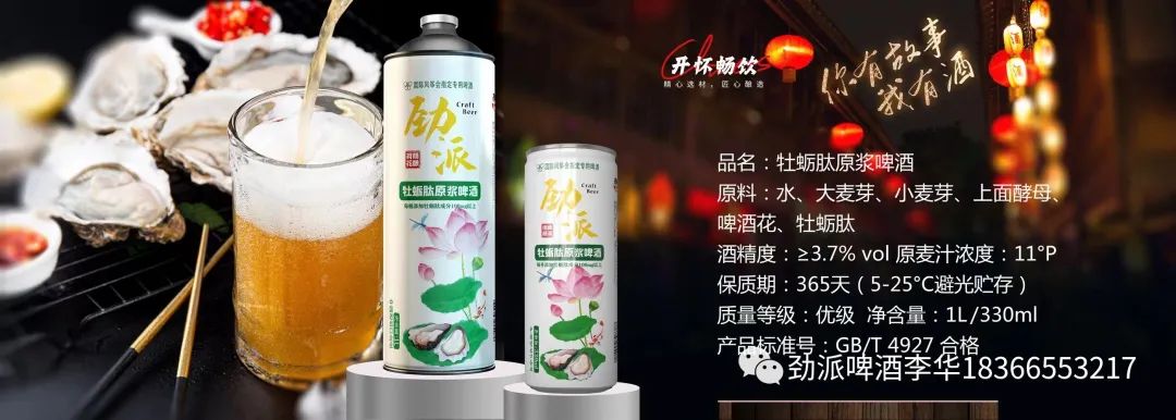 说完此款原浆啤酒本质的优点我们不得不说的就是这款啤酒的特点就是在酿造过程中添加了大家都熟悉的牡蛎肽成分。