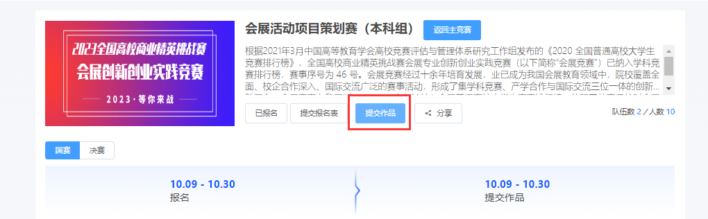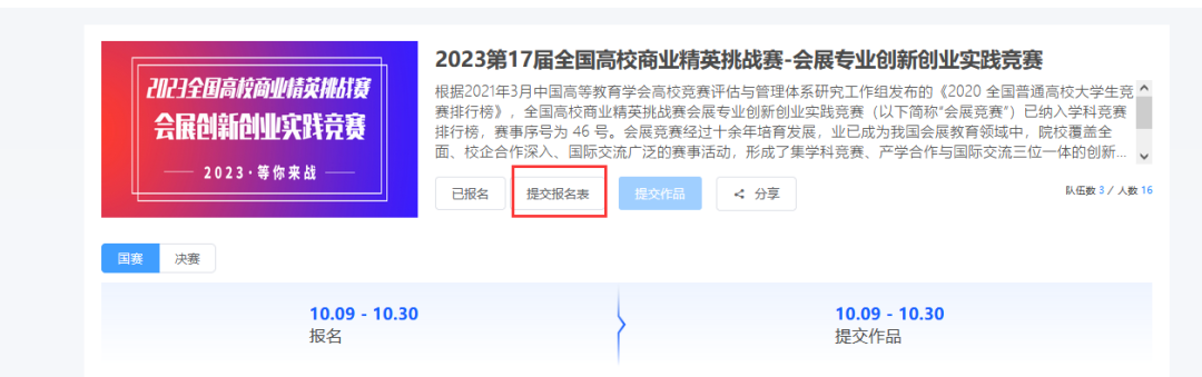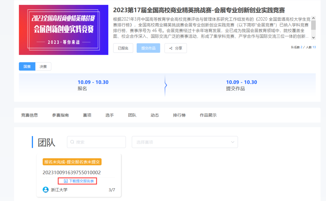 2 .队长填写提交作品信息,选择赛项→个人(团队)→提交(如下图11)。