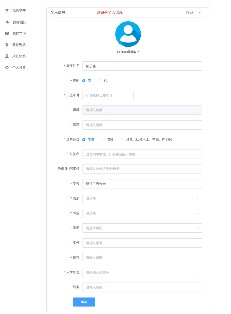 打开https://cc.moocollege.com/#/details?id=14196登录账户→在个人中心→个人信息,点击修改下拉框(如图4所示),带*必填,最后保存。