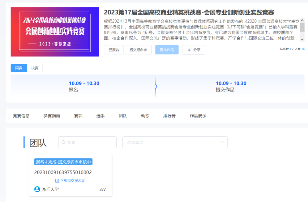 先下载提交报名表,盖章后,点击提交报名表如下图6。提交盖章报名表后显示“报名未完成-报名表审核中”等待秘书处审核,如图8
