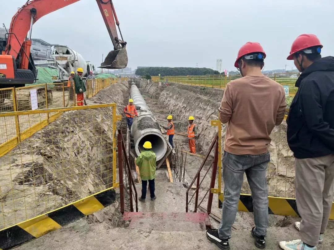 目前,项目正在进行3#通道底板钢筋绑扎、4#通道基坑开挖施工,管道施工已完成1000米,占总量的33%。项目部正统筹谋划、倒排工期,在保安全、保质量的前提下,促使各工序无缝衔接,以工程质量为底线,以工序保工期,为后续施工节点如期完成奠定基础,力保项目早建成、早通车。