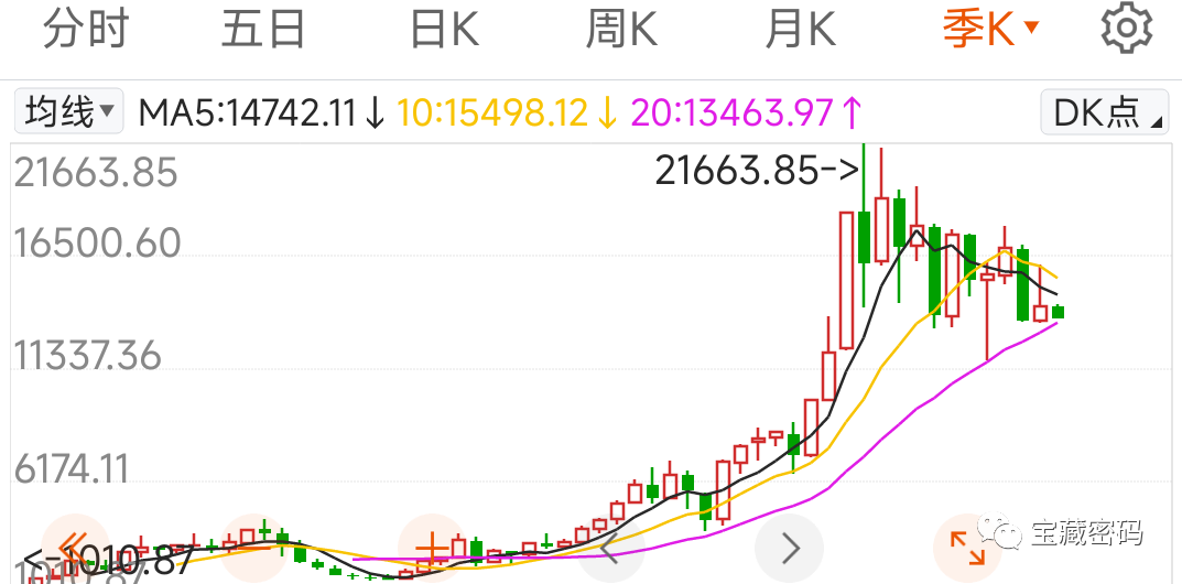 1.本来就是大周期下行趋势:我们需要明确,目前的白酒本来就处于大周期下跌的趋势当中,季线层持续向下,以季度为单位的调整一直在延续,虽然期间会有还不错的反弹行情,但趋势一直都在,我们一定学会尊重趋势的力量!