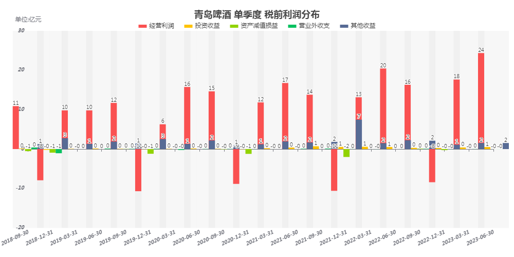 公司税前利润分布,主营业务利润占比70%以上,每年规模较大的政府补贴。