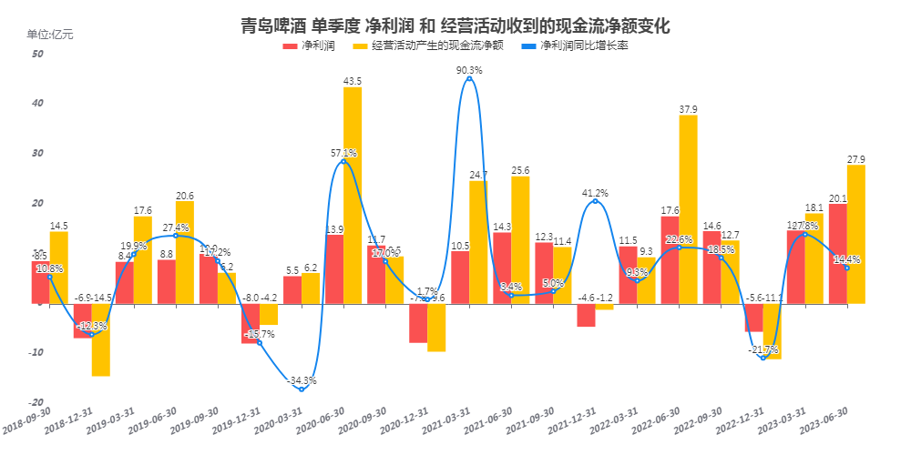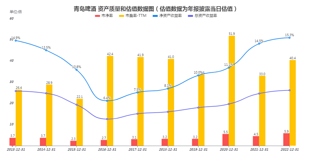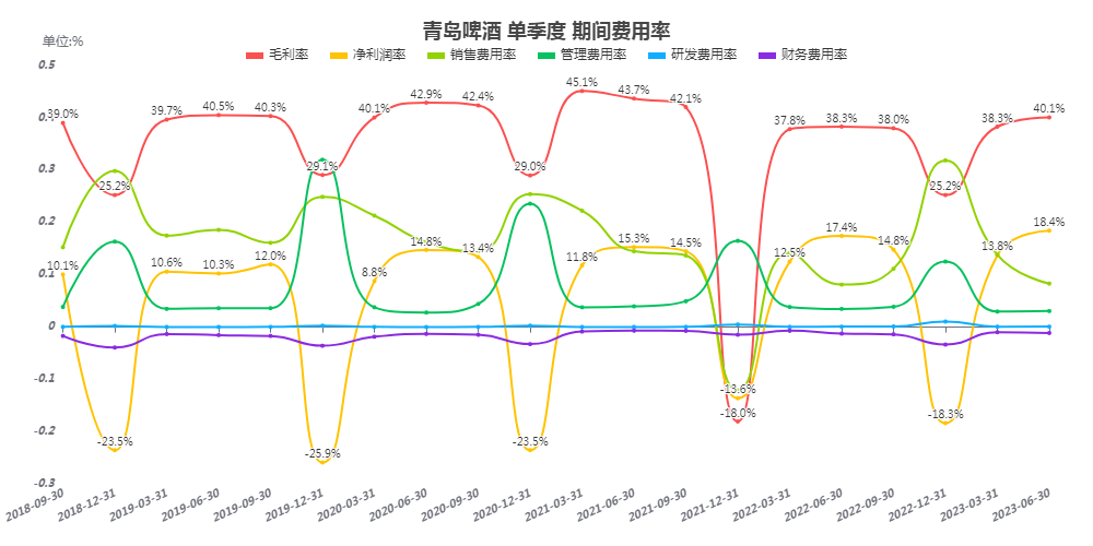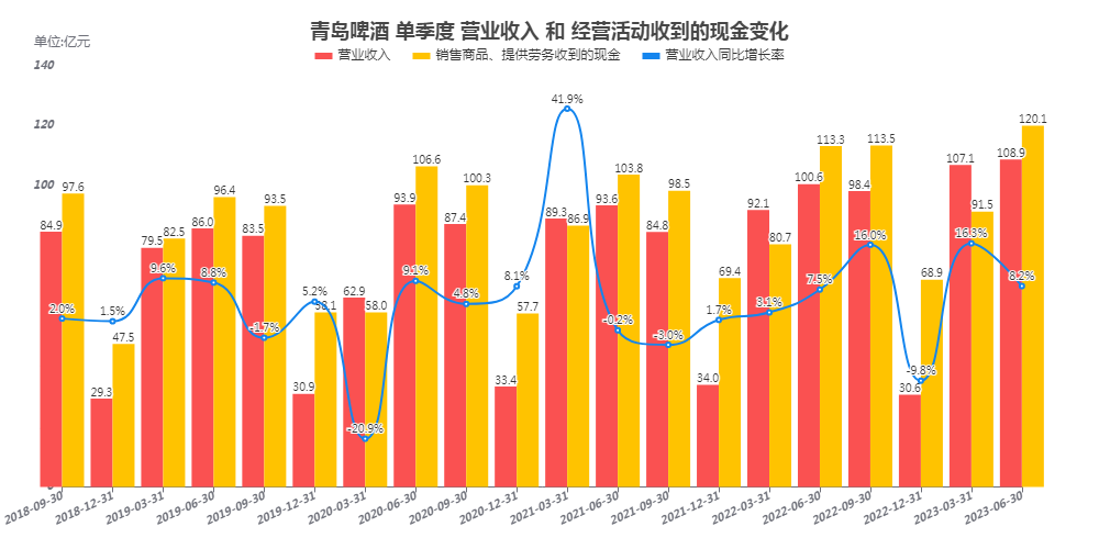 公司收入增速非常低,同比增速长期在个位数,净利润增速高于收入增速,但跟同时期的白酒企业相比,仍然有一定差距;