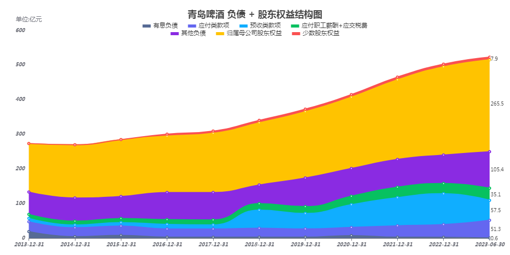 负债端,最大的负债是合同负债58亿,合同负债同比略微下降,说明下游需求萎缩,其次是应付类款项51亿;有息负债在0附近,远小于公司现金类资产,公司现金流超级充足;