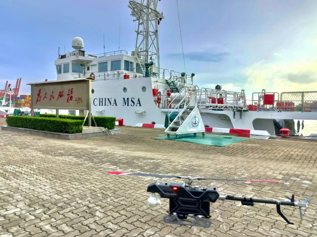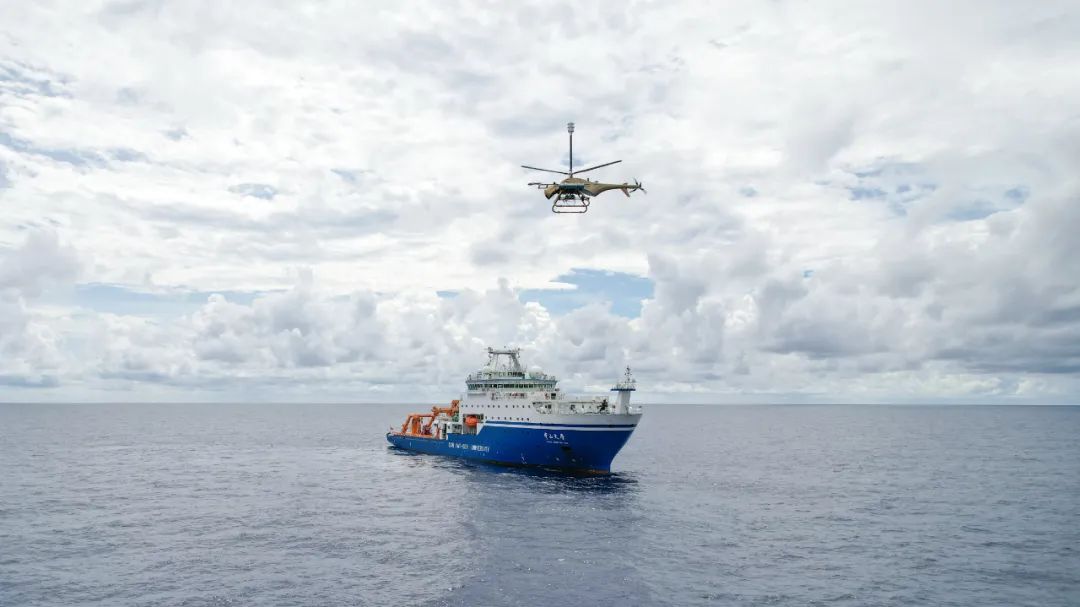 2021年10月,紫燕团队参加南方海洋科学与工程广东省实验室(珠海)团队项目,并参与大湾区、南海等多个航次科考。由于海上环境复杂,科考需求较多,需兼容多品类任务载荷,对通信距离及续航能力有较高要求。河豚系列无人直升机均具备以上要求,且支持动基座起降,实现无人机在航行中进行起降。当前,河豚系列无人直升机累计参加科考任务4航次,安全飞行100余架次,与科考船协同观测获取大量海洋环境及大气数据,填补船载无人机海气通量智能观测系统的空白,基于人工智能技术提升海洋观测效能。