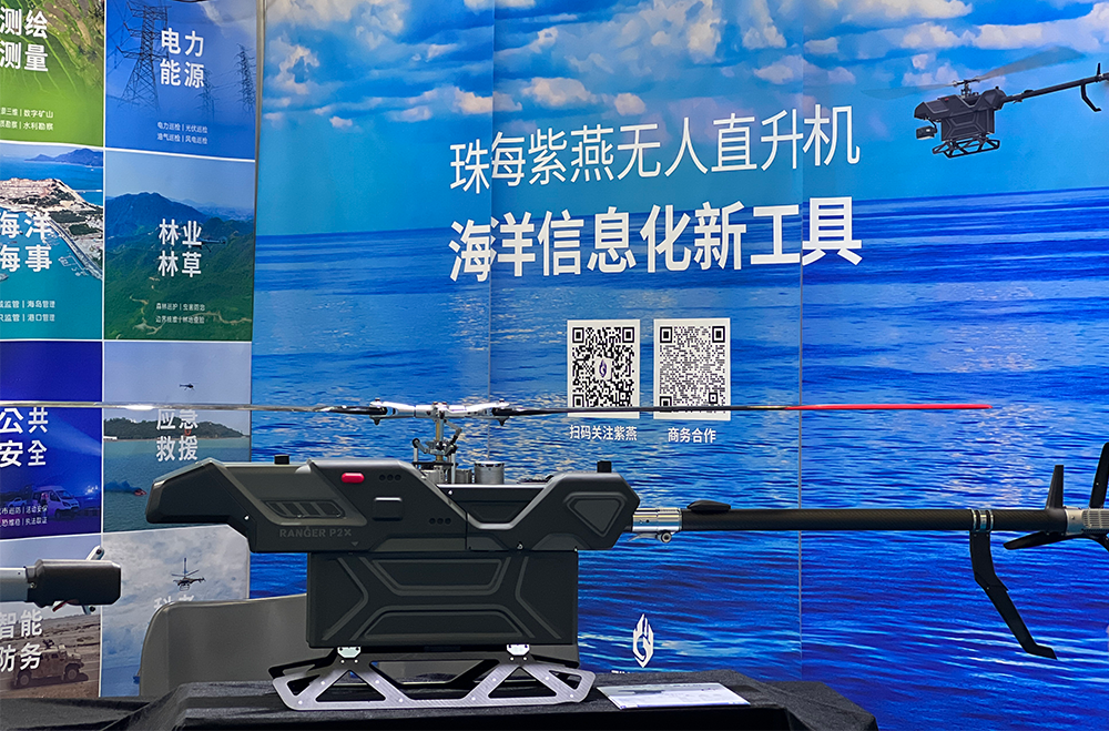作为海洋信息化建设重要参与者和智能化装备的制造商,紫燕在展会现场通过实物+多媒体演示的形式,生动立体展示了以无人直升机、高清载荷为基础,结合物联网、大数据、AI智能识别等前沿技术,深入海洋应用场景,打造的智能化解决方案。