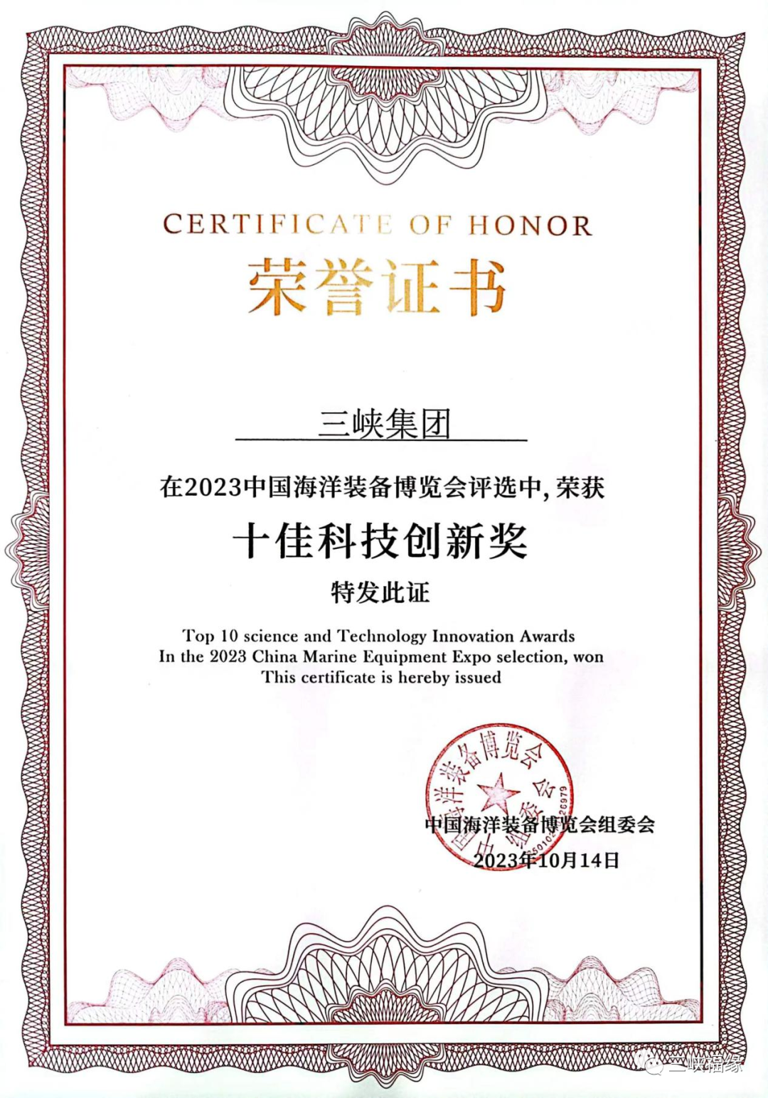 10月13日,在福建福州举办的2023中国海洋装备博览会颁奖典礼活动上,三峡集团荣获“十佳科技创新奖”!