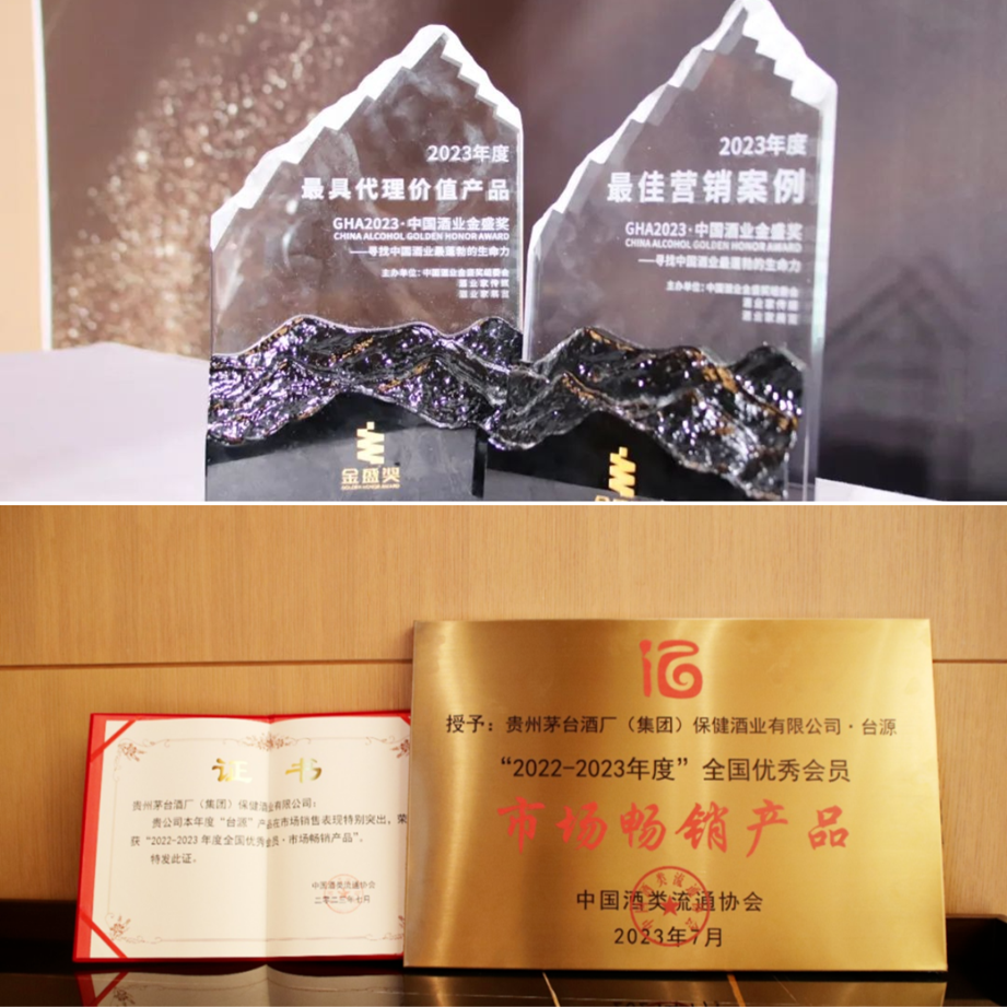 保健酒业公司“茅台醇”曾获金爵奖、青酌奖、“中国名牌产品”“中国名优产品”“国际烈酒(中国)金奖”等荣誉称号,作为保健酒业公司焕新上市的大单品“台源”同样也十分抢眼,曾荣获2023年度最具代理价值产品、中国酒类流通协会市场畅销产品,“酱香台源 福到万家”活动还获得了2023年度最佳营销案例奖。