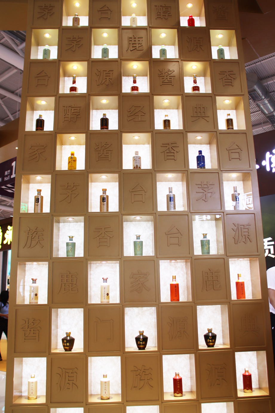 展馆内有茅台醇“时光如流水,珍惜有缘人”的流光形设计和“缘”文化的表达,台源大型瓶身和广告宣传也设置在展位门头的左右两侧,展馆内滚动播放的产品视频为客商行人带来视觉和情感的冲击,牢牢抓住了经销商和消费者的眼球。
