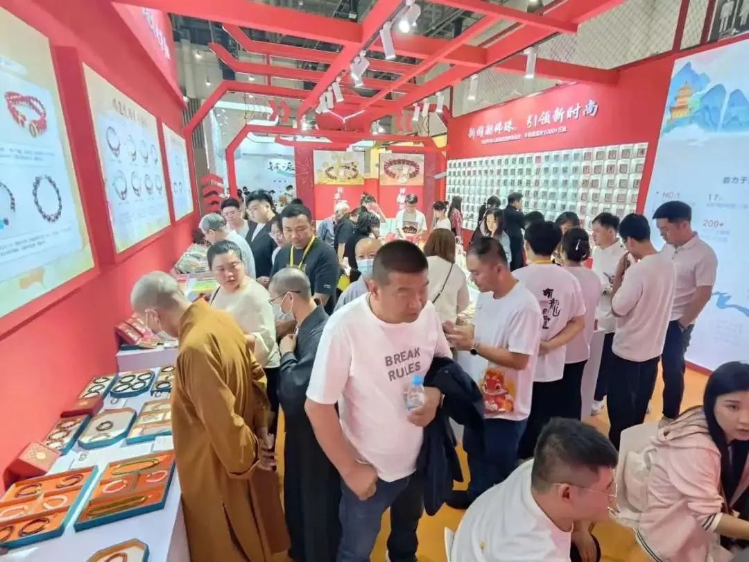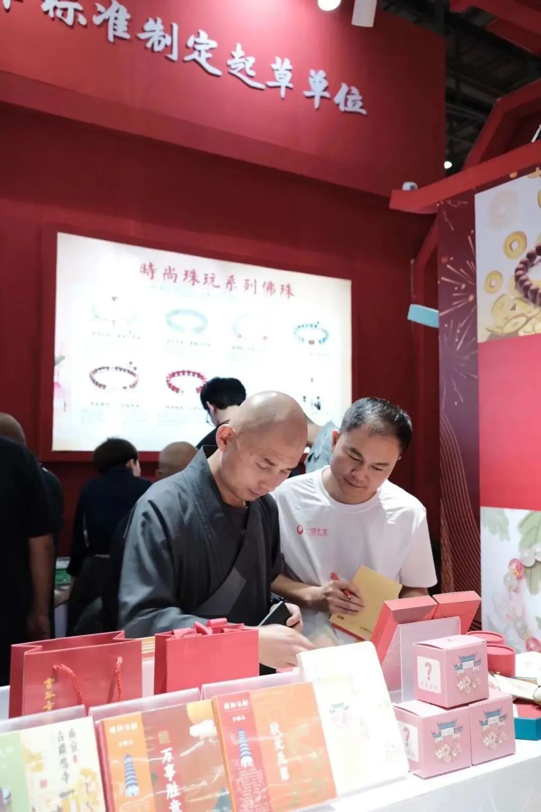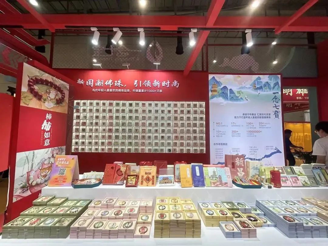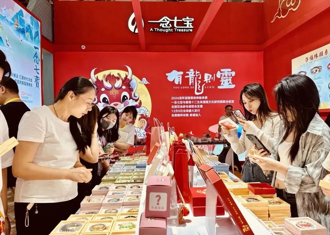 “一珠一欢喜,一串一圆满。”作为本届佛事展会上的热门打卡地,一念七宝展馆带来的国潮珠饰,不仅展现了传统文化的深厚底蕴,也融合了现代审美元素,使产品焕发出新的生命力。