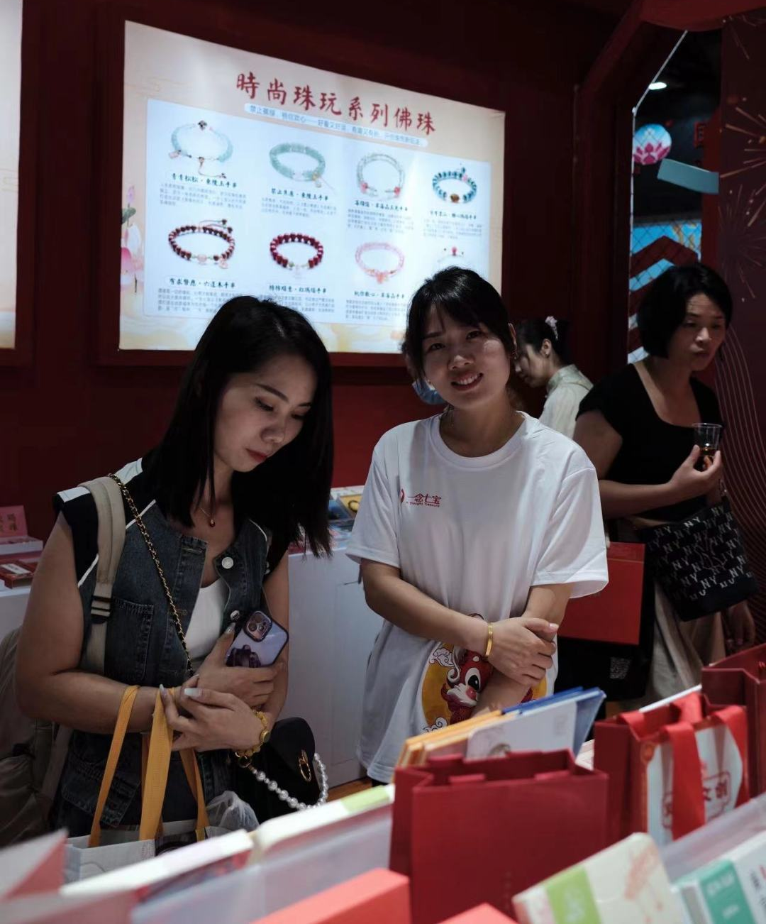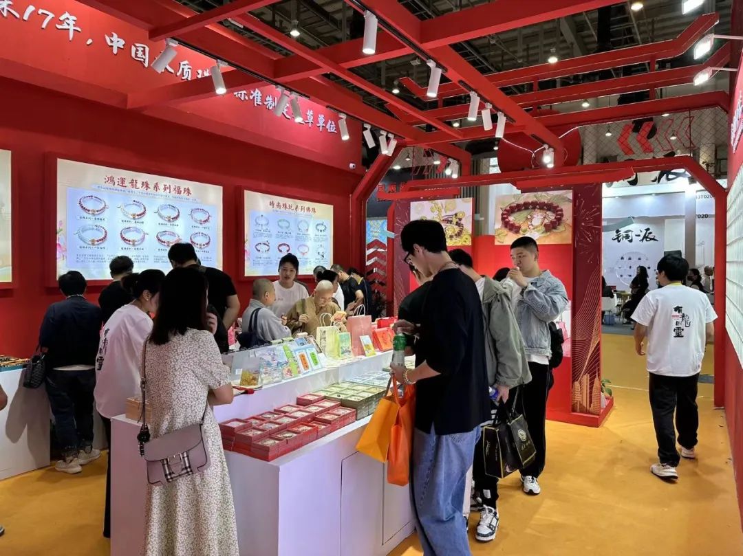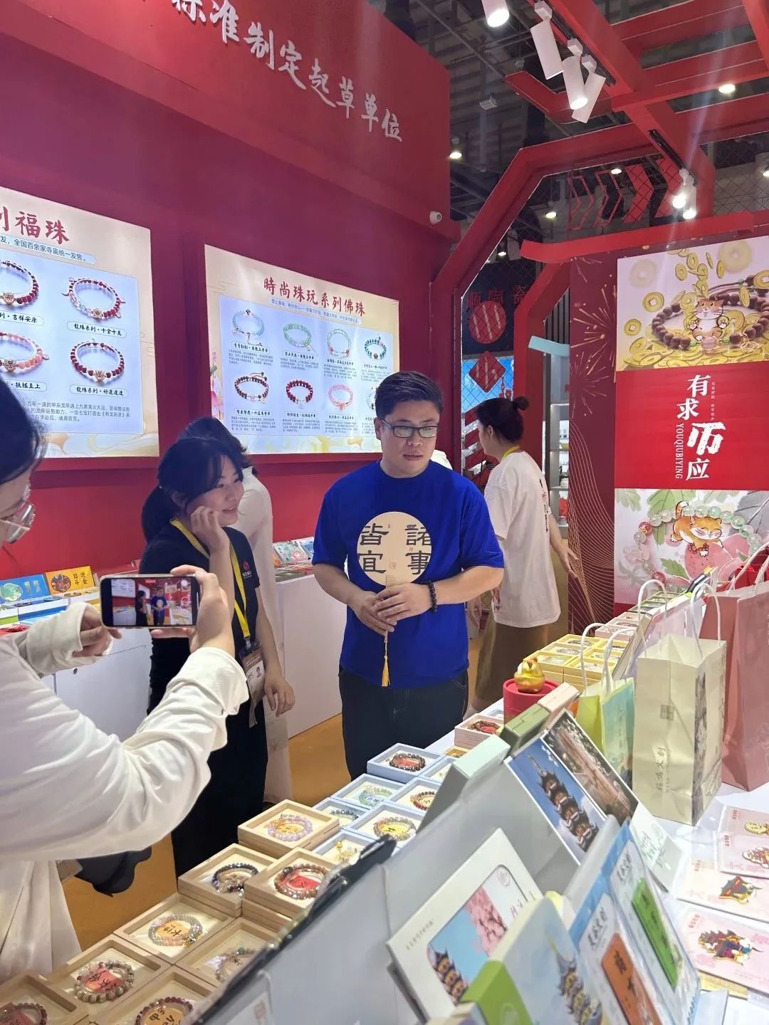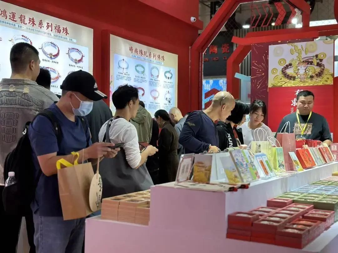 “一珠一欢喜,一串一圆满。”作为本届佛事展会上的热门打卡地,一念七宝展馆带来的国潮珠饰,不仅展现了传统文化的深厚底蕴,也融合了现代审美元素,使产品焕发出新的生命力。