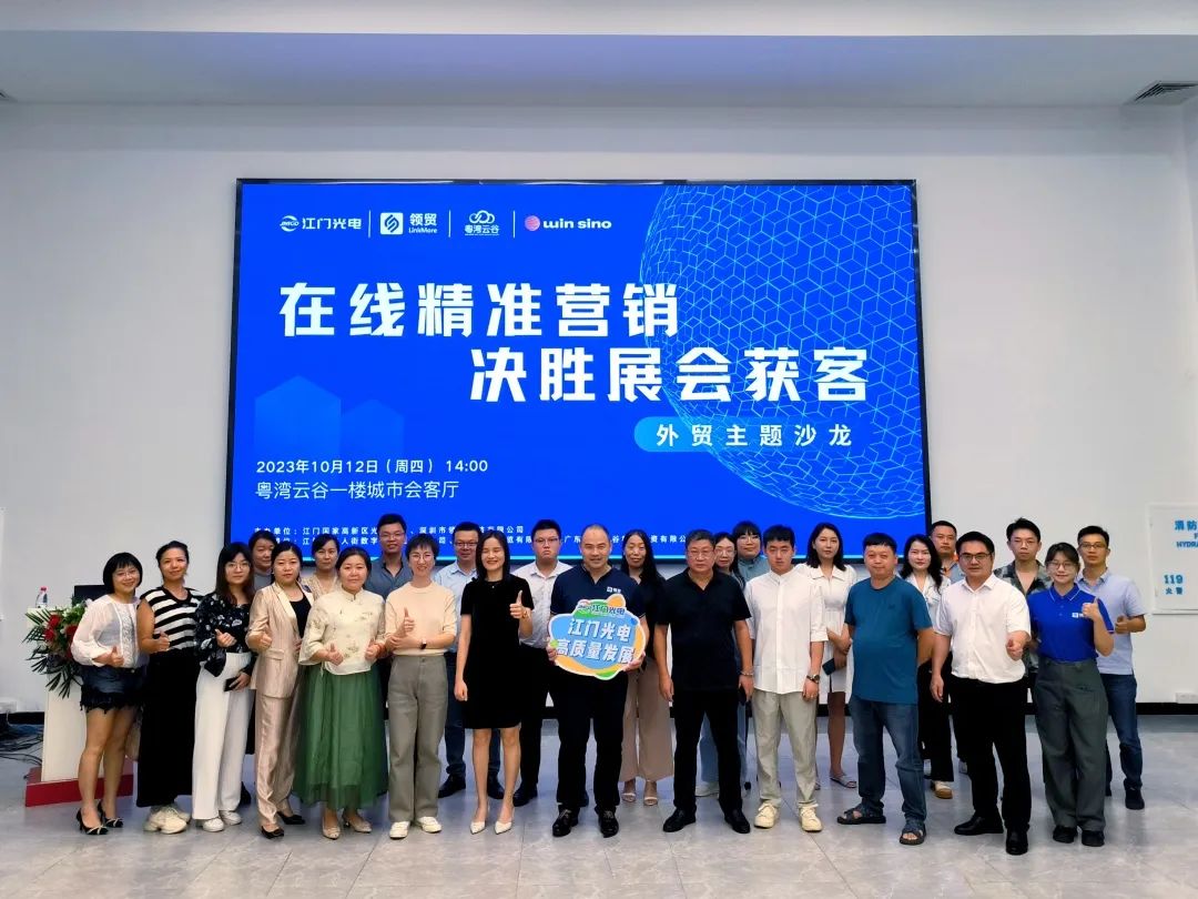 为进一步助力我会会员企业高质量发展,共同探讨外贸转型发展的新思路。光电协会联合深圳市领贸科技有限公司、江门市唐人街数字供应链有限公司、广东潮域展览有限公司、广东粤湾云谷科技投资有限公司等单位联合举办在线精准营销,决胜展会获客外贸实战沙龙。