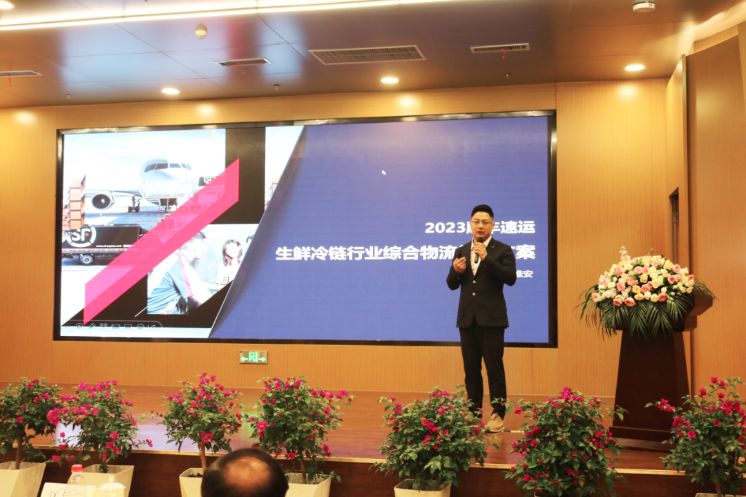 顺丰苏北市场销售负责人王成在江苏首例BAP认证大闸蟹品牌—“洪泽湖大闸蟹”优选会上发表了主旨演讲,分享顺丰行业一体化供应链解决方案助力行业高质量发展和乡村振兴的系列举措和成果。