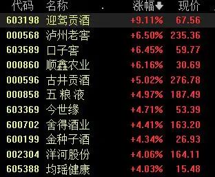 周四早盘,白酒股强势上涨,截至发稿,迎驾贡酒大涨超9%,泸州老窖、口子窖、顺鑫农业涨超6%,古井贡酒、五粮液、今世缘、舍得酒业等纷纷上涨,贵州茅台涨超3%,报1778.6元。