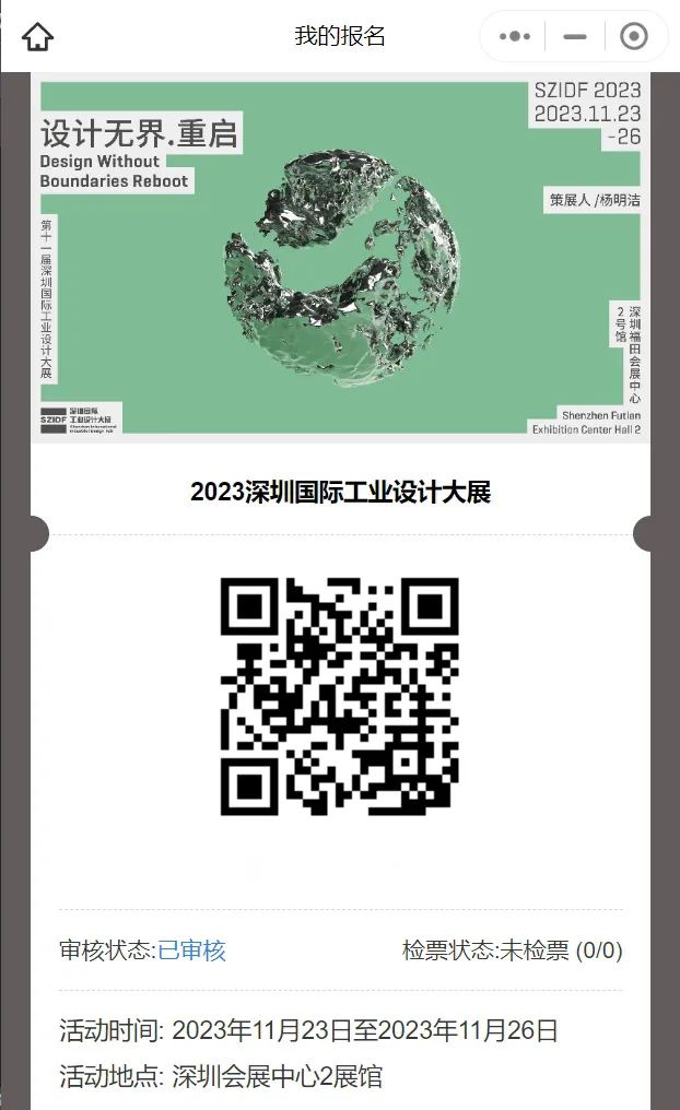 进入官方微信小程序后,通过“我的” → “我的报名”即可随时查看门票。