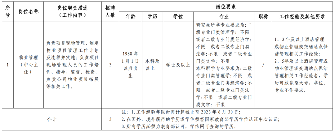 招聘岗位及具体要求详见《温州市轨道交通资产经营管理有限公司2023年面向社会公开招聘工作人员计划表》。