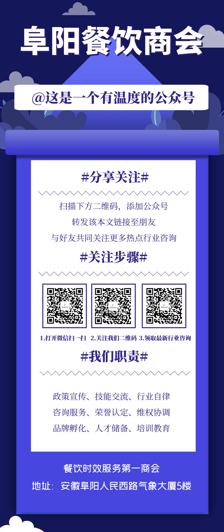 地 址:阜阳市颍州区人民西路气象大厦阜阳餐饮商会5楼