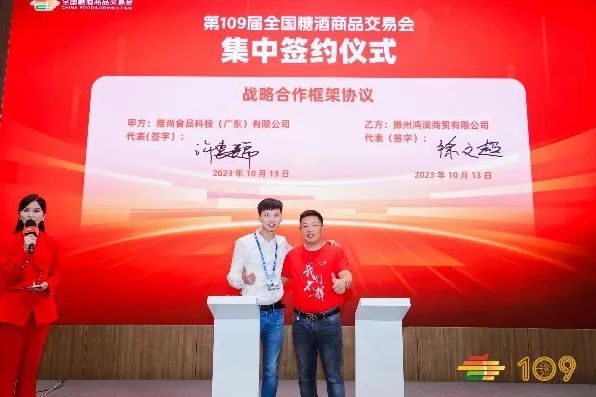 最后,雅尚食品和滕州鸿润两家企业共同签署战略合作框架协议,至此第109届全国糖酒商品交易会集中签约仪式圆满结束。