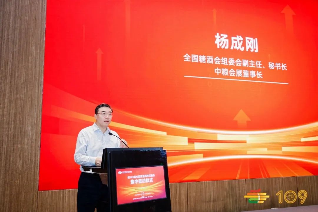 大会伊始,全国糖酒会组委会副主任、秘书长、中粮会展董事长杨成刚代表全国糖酒会组委会对各位来宾的莅临表示热烈的欢迎。他介绍到,本届糖酒会紧扣“交易为王”的主题,举办了本次集中签约仪式。在今天的活动上,糖酒会参展团和参展企业,将向与会代表集中进行产业政策宣讲和特色产品推介,便于采购商代表集中签约,展示他们在本届糖酒会期间取得的丰硕成果。同时,多种地方特色产品和新品在本次活动中亮相发布,希望各位采购商多多关注。