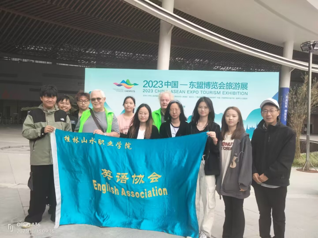 2023年10月13日至15日,2023年中国—东盟博览会旅游展在桂林国际会展中心举办。我校英语协会在桂林英语角的组织下,以及协会指导老师基础部余拥军主任的带领下参加了本次展会。