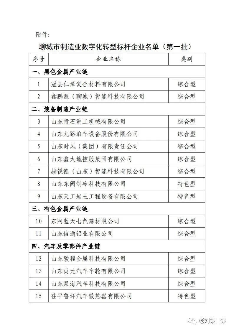 附件:聊城市第一批制造业数字化转型标杆企业名单
