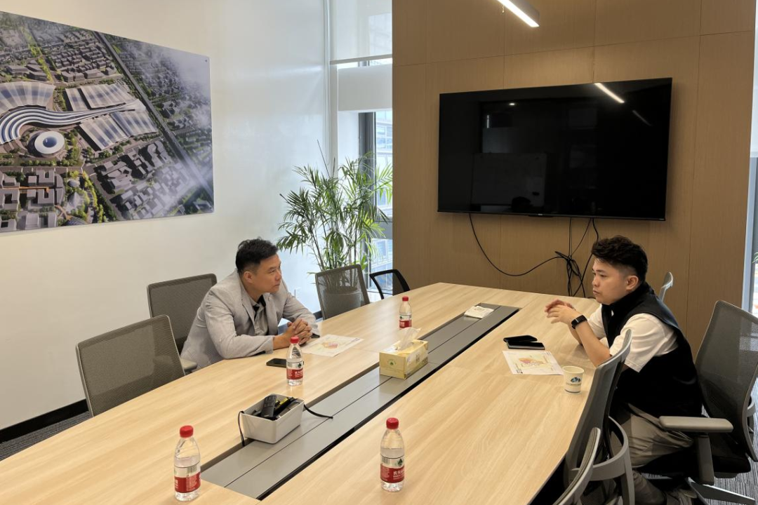 与下沙高教直播园区(网虹城)负责人洽谈邬里村产业业态布局事宜。