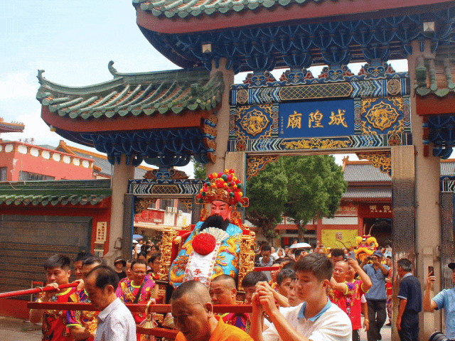 揭阳城隍庙里面供奉的,都是有功于潮汕地区的名臣英雄,是民间和道教信奉守护城池之神。神像每一个都是细致入微地雕刻而成,造型端庄,千姿百态。在揭阳,有一年一度城隍公出巡的民俗活动,彩旗飞扬,锣鼓喧天,寄托着潮汕人对美好生活的热切期盼。