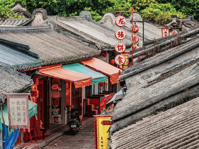 迈着舒缓的步履,踏在凹凸不平的小巷曲径上,享受村落的古朴清净,在紧凑的生活中喘口气。走街串巷之余,赏年代感建筑,听当地人闲谈,看小孩子打趣,老者乘凉,观旧店铺吆喝,修锁的、裁衣的、修单车的、做糕点的,皆为老旧村落添上不少生气,言语里尽是岁月静好,满溢着生活的烟火气息。