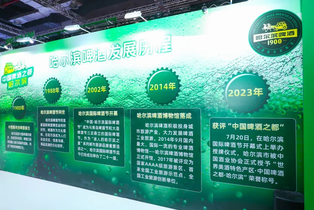 作为本届酒博会的一大亮点,哈尔滨城市展厅惊艳亮相,沉浸式打造啤酒文化体验,展示了哈尔滨啤酒1900“中国啤酒之都”纪念版啤酒、0451哈尔滨的故事啤酒、小哈啤酒、中国啤酒之都·哈尔滨文创周边等一系列带有鲜明哈尔滨城市IP的产品,向来自全国各地的酒类爱好者展示了中国啤酒之都·哈尔滨悠久的啤酒历史和文化底蕴。