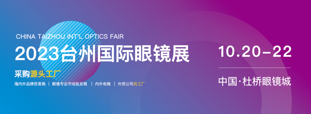 2023台州国际眼镜展将于10月20日在中国·杜桥眼镜城盛大启幕,为期三天,汇聚一众国内外优质客商、行业精英人士,大家共聚一堂探讨行业前沿话题展望行业发展未来,推动行业贸易往来,助力眼镜行业市场交易生态,临近展会之际组委会特此奉上参观指南,以便于广大参观商更高效了解台州国际眼镜展的基本信息和精彩活动。