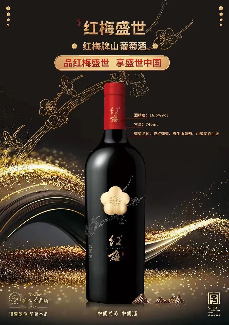 红梅盛世山葡萄酒,是2023年通葡股份重磅推出的红梅系列升级新品,红梅系列自1954年至今已经拥有了70年的产品发展史,在广大消费者心中具有一定的影响力和号召力。此次红梅盛世产品是对红梅系列全新的升级之作,采用延迟采收集安鸭绿江河谷产区双红葡萄和长白山林野生山葡萄果实,综合运用现代控温浸渍工艺、特种优选酵母生香酿造,传统敞口发酵池缓慢自然发酵,10年酒龄山葡萄原白兰地打断发酵,橡木桶赋香柔化陈酿熟成等技术精心酿造。包装工艺采用了重磅瓶和烤漆印花的处理,适合更为丰富的场景化需求,无论是商务宴请还是送礼都足见心意,更加合适。