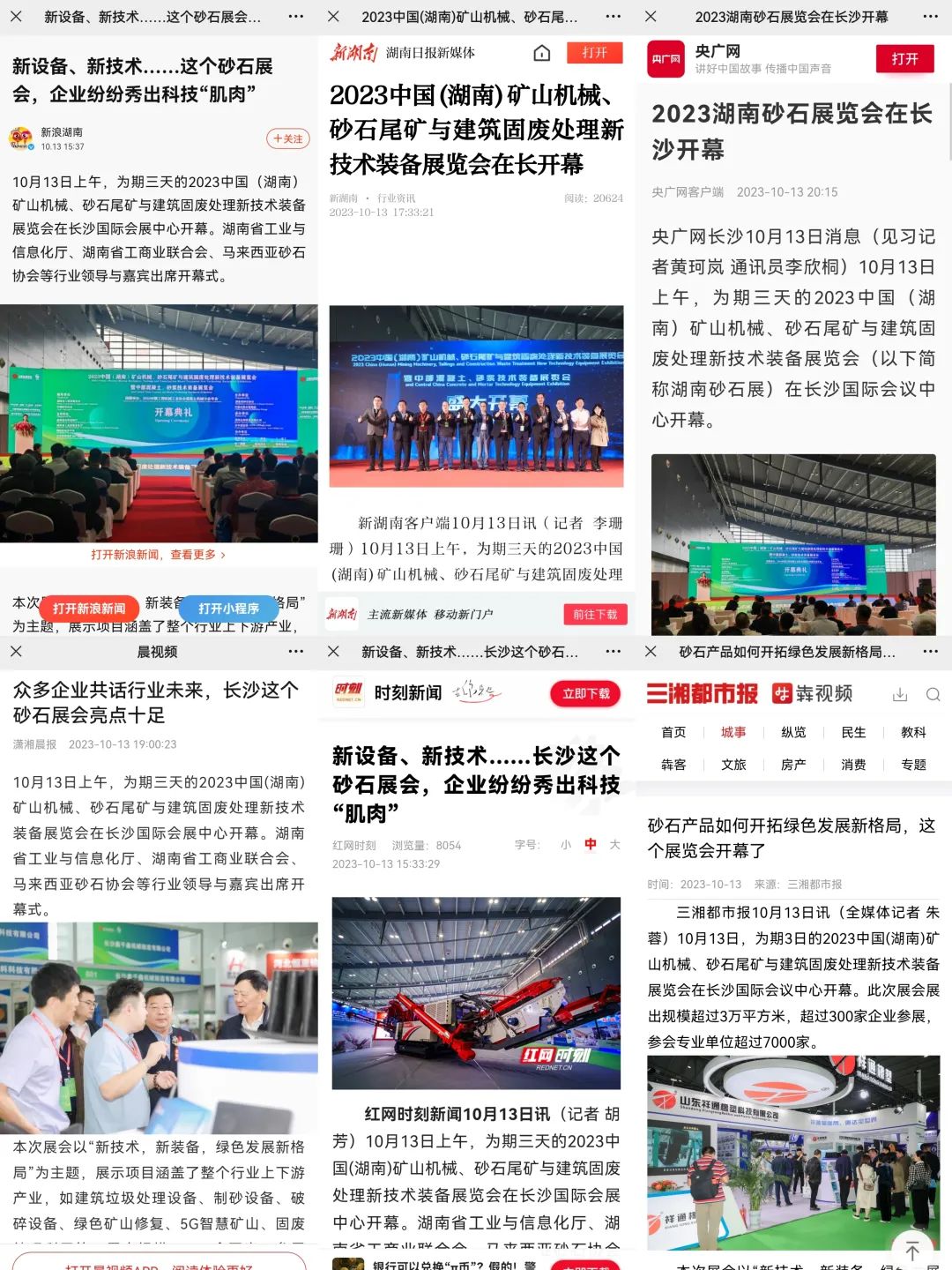 10月15日,为期三天的2023中国(湖南)矿山机械装备、砂石尾矿及建筑固废处理技术装备展览会在湖南长沙国际会展中心圆满落幕!