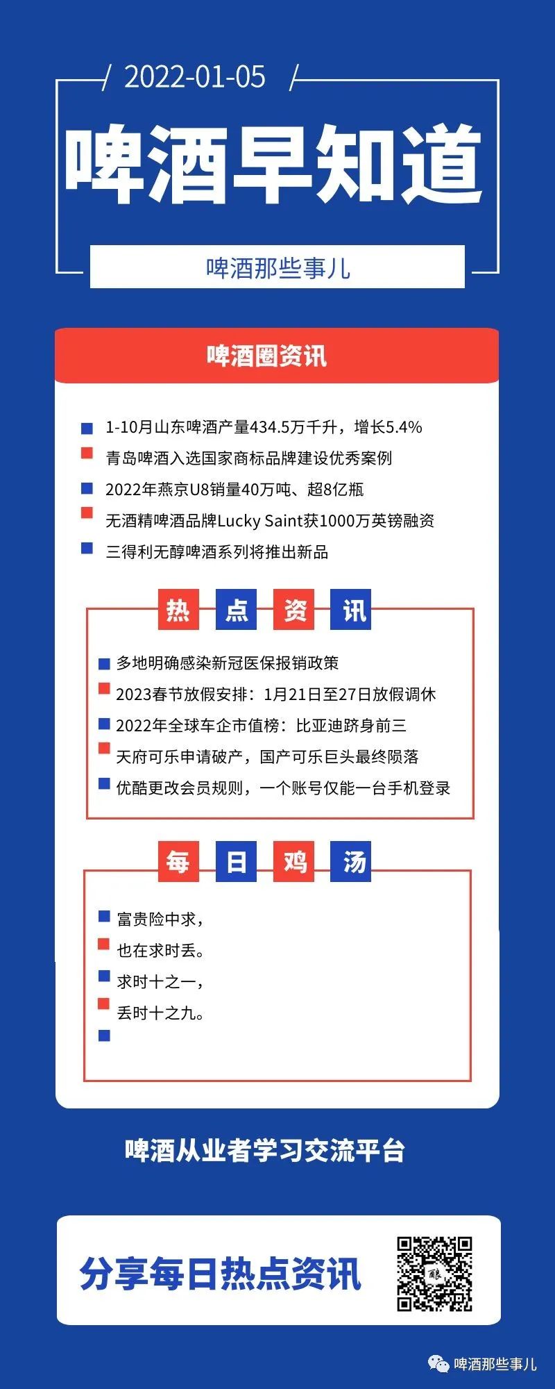 1-10月山东啤酒产量434.5万千升,增长5.4%