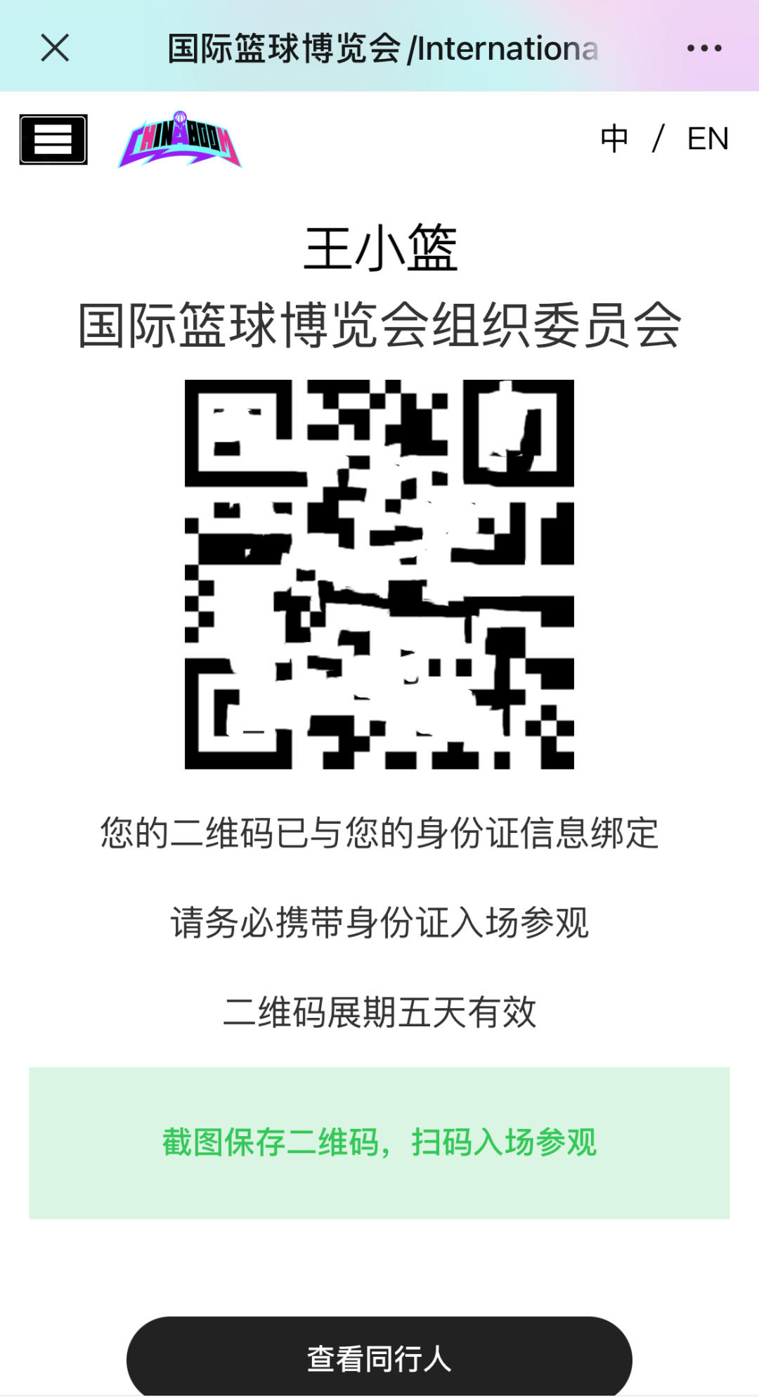 即可以快速查询到自己的入场码 get√