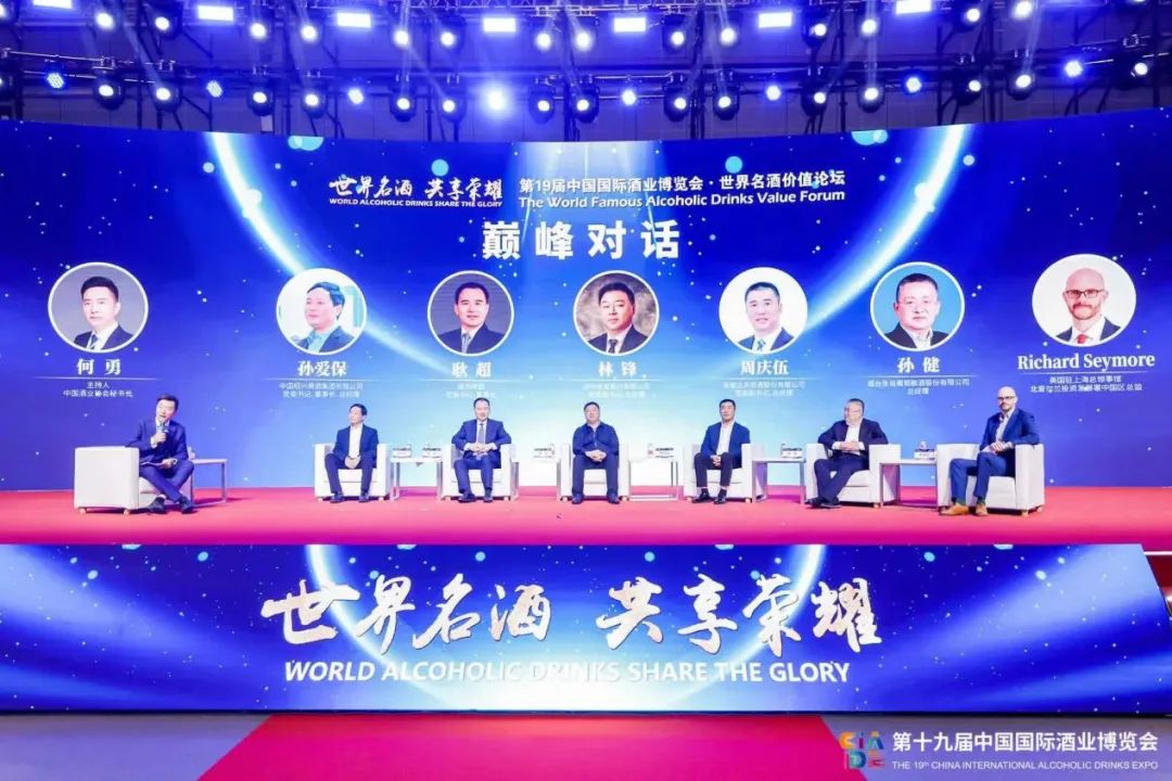 在随后的巅峰对话环节中,中国绍兴黄酒集团有限公司党委书记、董事长、总经理孙爱保,燕京啤酒集团党委书记、董事长耿超,泸州老窖股份有限公司党委副书记、总经理林锋,古井集团党委副书记、股份公司总经理周庆伍,烟台张裕葡萄酿酒股份有限公司总经理孙健,英国驻上海总领事馆、北爱尔兰投资发展署中国区总监Richard Seymore(习摩尔)各抒己见,为现场观众带来一场思想碰撞交流的盛宴。对话由中国酒业协会秘书长何勇主持。