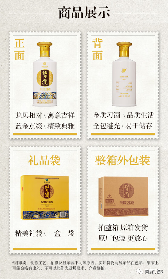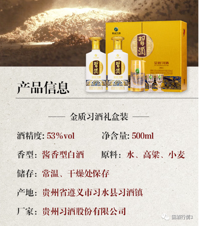习酒第四代金质酱香型白酒在选材方面非常讲究,甄选优质的原材料,并采用固态发酵方法,使得酒香更加浓郁。产品的香味非常清香典雅,入口绵甜甘冽,让人品尝后回味无穷。这款白酒选用了天然好粮和清冽泉水,采用传统工艺酿造,窑香纯正,入口干净甜美。外包装采用了精致典雅的中国红,简约大气,非常适合作为送礼的佳选。