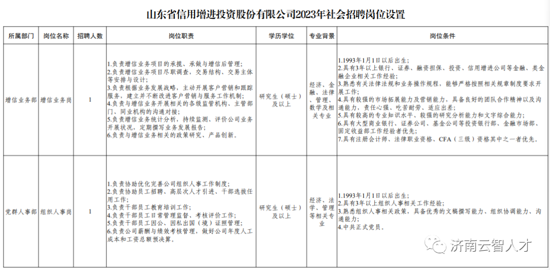 2023年“才聚齐鲁 成就未来”山东省信用增进投资股份有限公司社会招聘公告