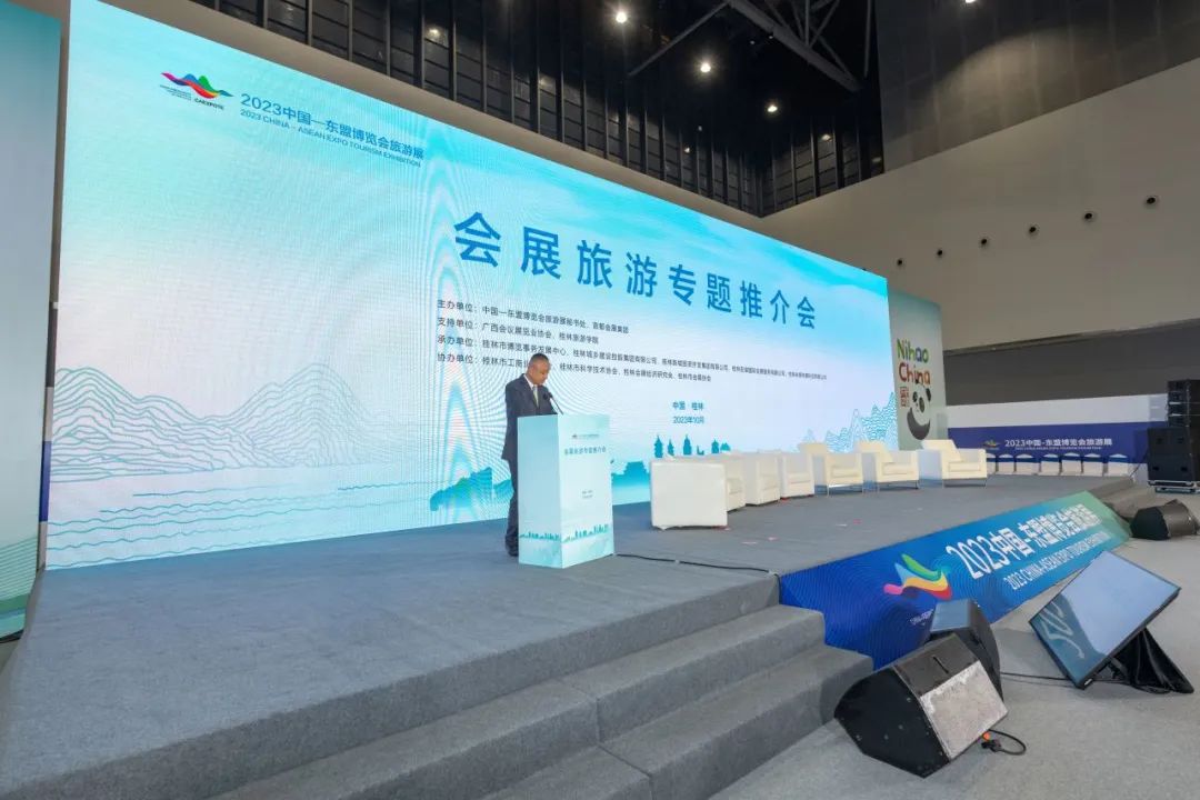 10月15日上午,由中国-东盟博览会旅游展秘书处、首都会展集团主办,桂林市博览事务发展中心、桂林城乡建设控股集团有限公司、桂林新城投资开发集团有限公司、桂林宏谋国际会展服务有限公司、桂林米青传媒科技有限公司联合承办的“2023中国-东盟博览会旅游展会展旅游专题推介会”在桂林国际会展中心4号展厅成功举行。