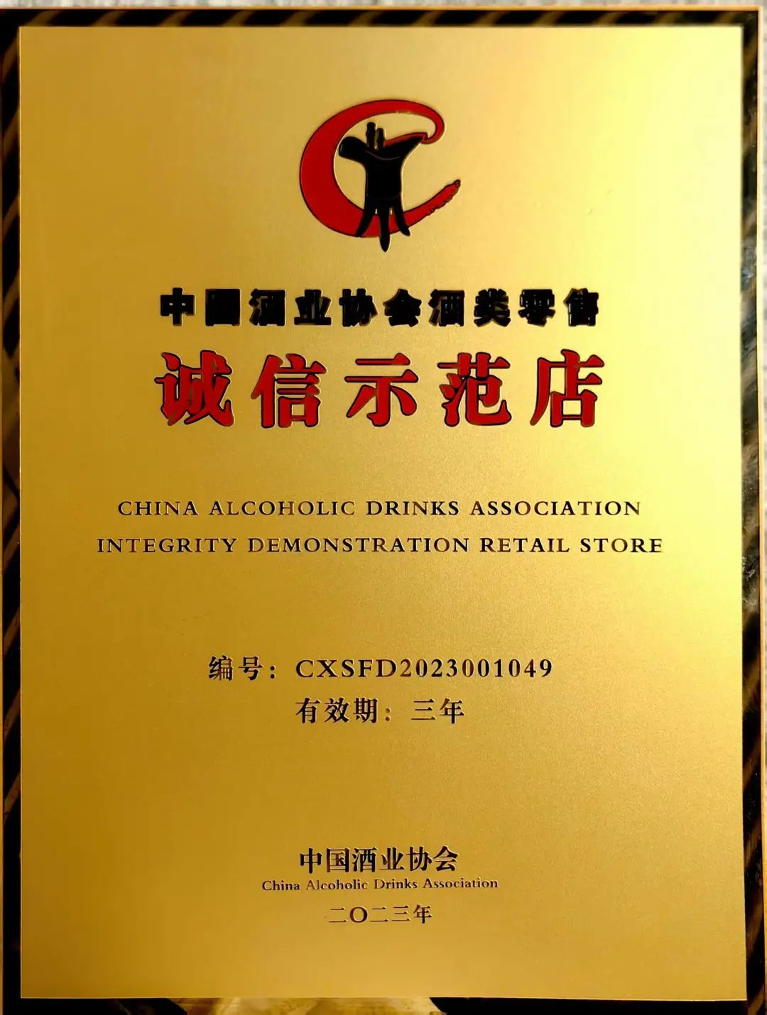 喜报 | 糖酒公司荣获“中国酒业协会 酒类零售诚信示范店”称号