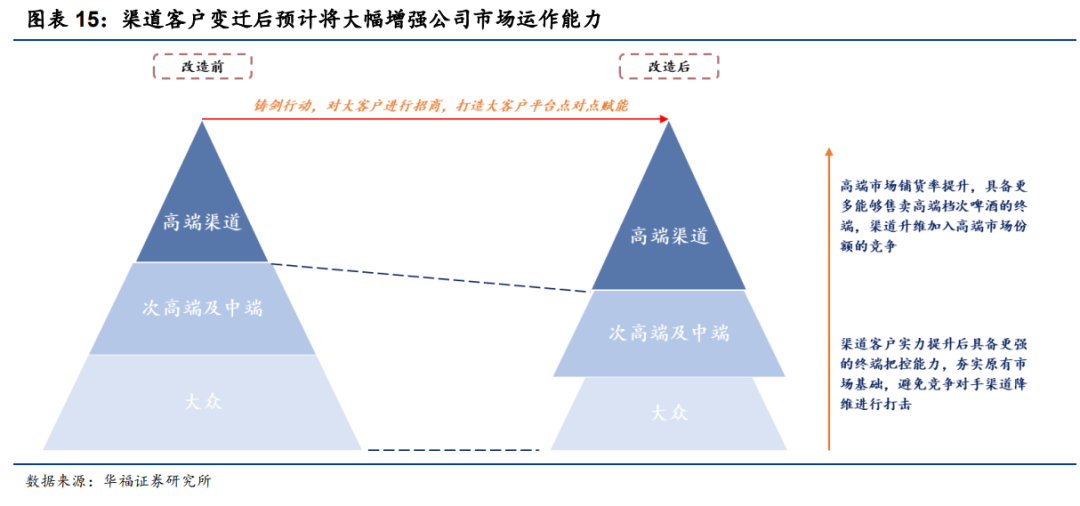 高端渠道力改善,决胜高端可期。大客户的加入可以使公司实现渠道升维逐鹿高端,同时快速渗透部分重点区域;合并小客户为中大型客户可以增强公司对终端的把控能力,夯实原有市场基础,避免竞争对手进行渠道降维打击。